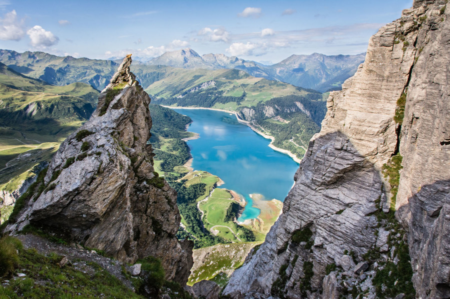 L’ascension du Rocher du vent (2360m) nous réservera une première surprise: une sorte de canyon sommital où la neige persiste tout l’été. La suite n’en est pas moins étonnante: nous jouons les explorateurs en empruntant un incroyable tunnel de près de 200 mètres transperçant la montagne. Ambiance garantie!
