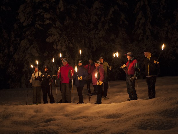 Une escapade nocturne qui marquera les esprit: Nous partons sous les étoiles fouler les champs de neige vierge. Un bon vin chaud dégusté arrivé au sommet et c’est parti pour une descente aux flambeaux! Ambiance magique garantie