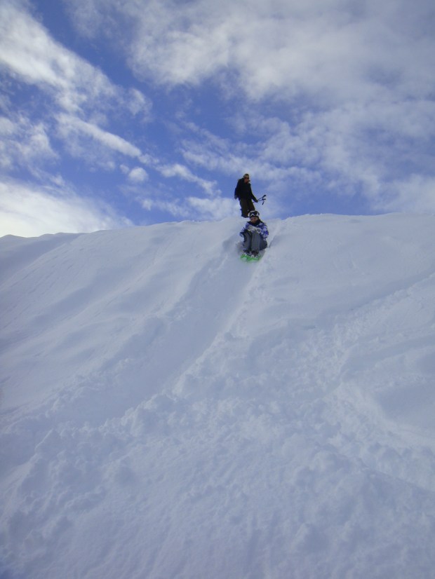 Les toboggans géants sont au programme (cf diaporama). Environ 200 mètre de glisse sur les fesses! N’ayez crainte, la neige absorbe très bien les chocs, comme dans du coton! Les adultes et surtout les enfants se feront une joie de découvrir la glisse en raquettes.